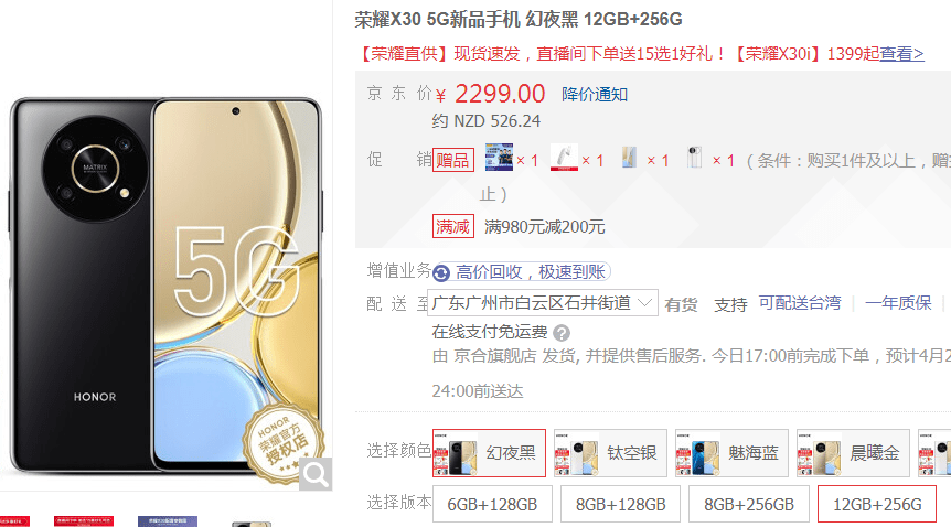 基本配置:幻夜黑,5G网络,12GB RAM + 256GB容量