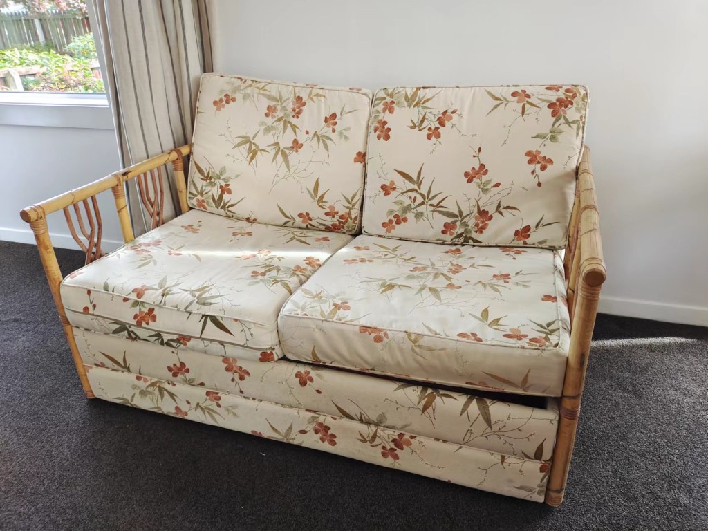 双人竹制沙发,可伸展成单人床。80刀,Bishopdale自取。手机:0212059465。微信:sjzxiabin